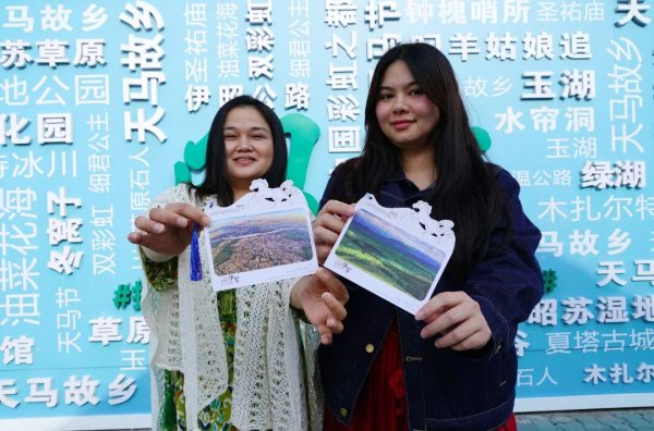 “马上”邮局营业员彩红说:“我手里的这款明信片是异形明信片,明信片上是伊犁风光,有天马的元素,还有流苏,很有设计感。我们还开发了以伊犁景点为主题的流沙冰箱贴,其中这款紫色的薰衣草冰箱贴是我们这里的爆款。”