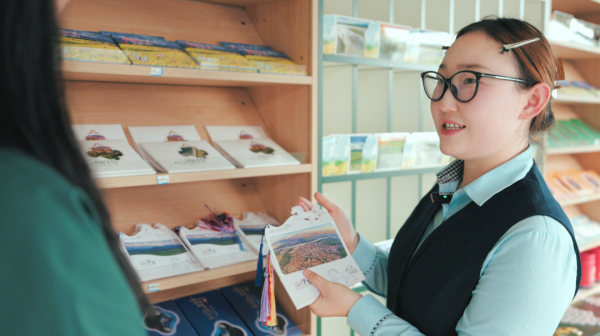 广东省梅州市游客李女士说:“‘马上’邮局很有特色,还有一个网红墙可以拍照,随意凹造型。平时我也会去景点购买明信片、冰箱贴当做伴手礼,我要把我手里的明信片邮寄给朋友。”