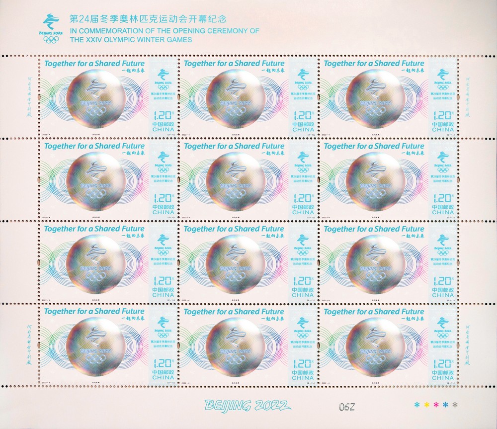 中国邮政定于2022年2月4日发行《第24届冬季奥林匹克运动会开幕纪念》纪念邮票一套2枚,邮票图案名称为共向未来、希望之光。全套邮票面值2.40元。邮票计划发行数量为1150万套。