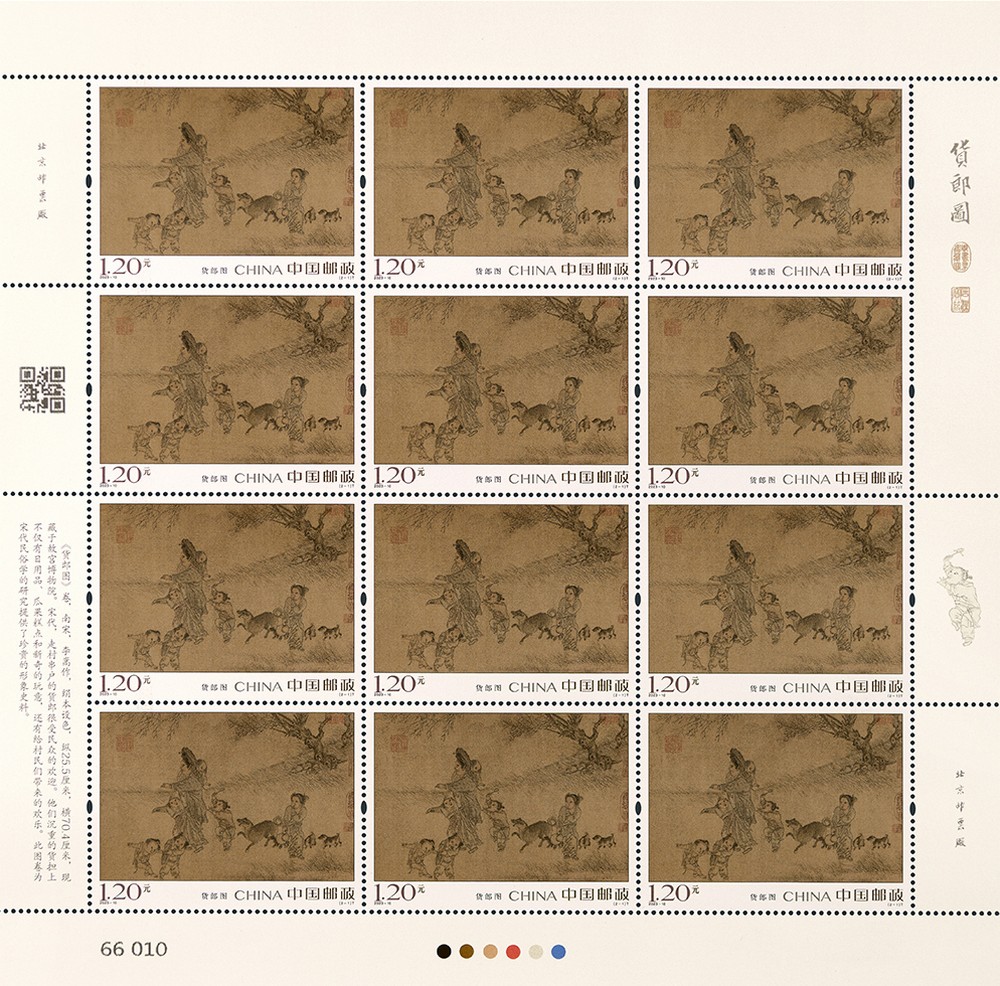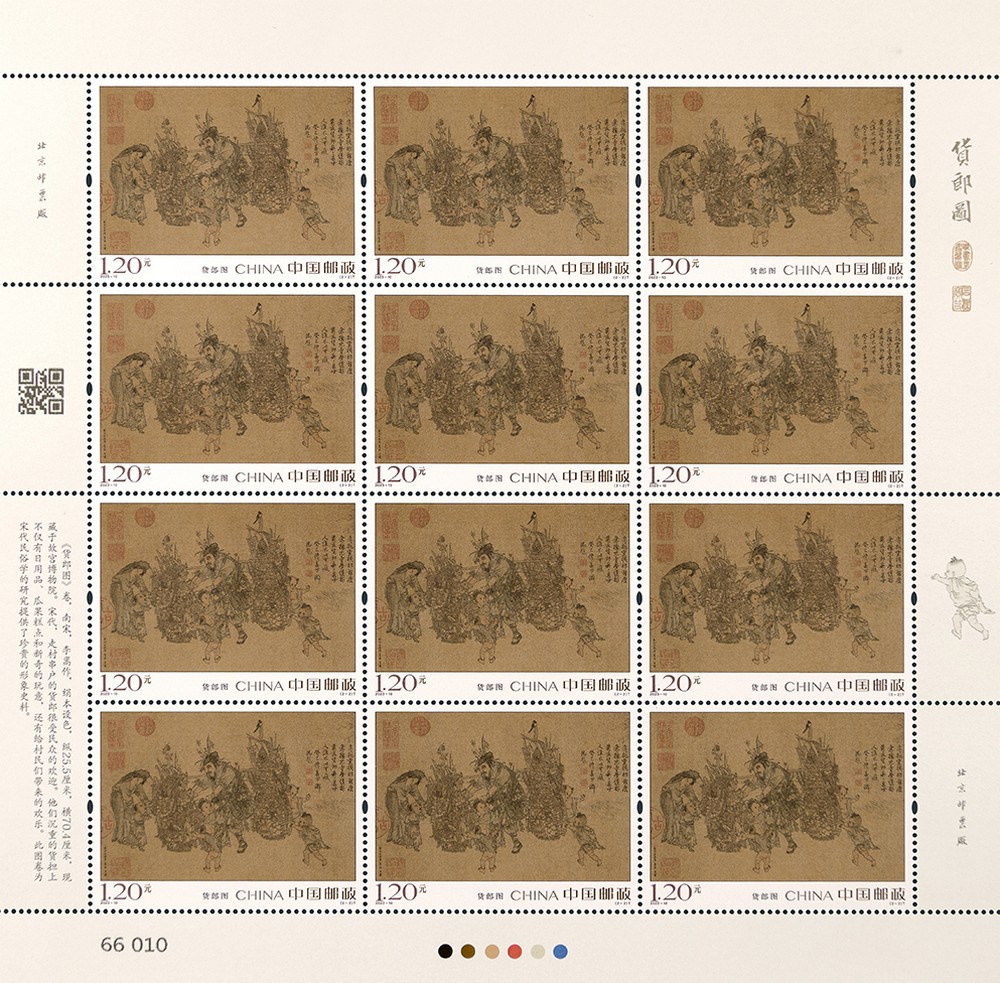 中国邮政定于2023年6月18日发行《货郎图》特种邮票1套2枚,小型张1枚。详情如下: