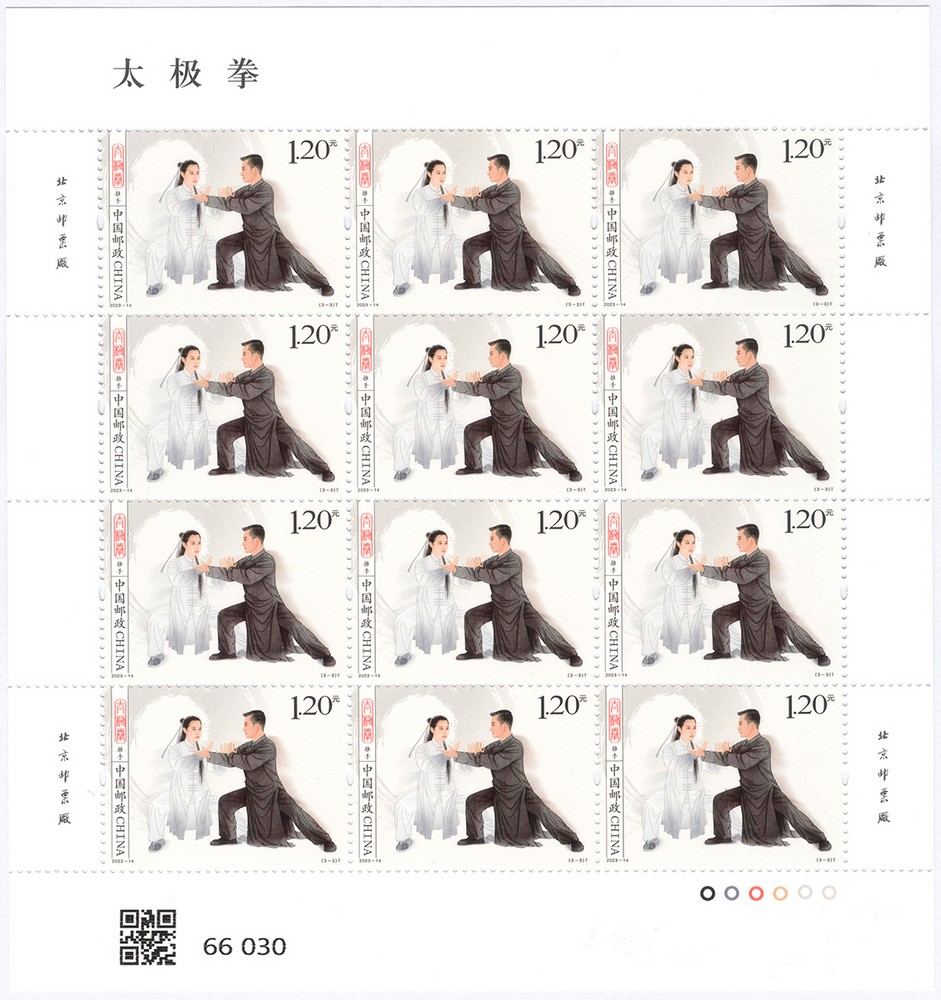 中国邮政定于2023年8月8日发行《太极拳》特种邮票一套3枚,邮票图案内容分别为:拳术、器械、推手。全套邮票面值3.60元。邮票计划发行数量为710万套。